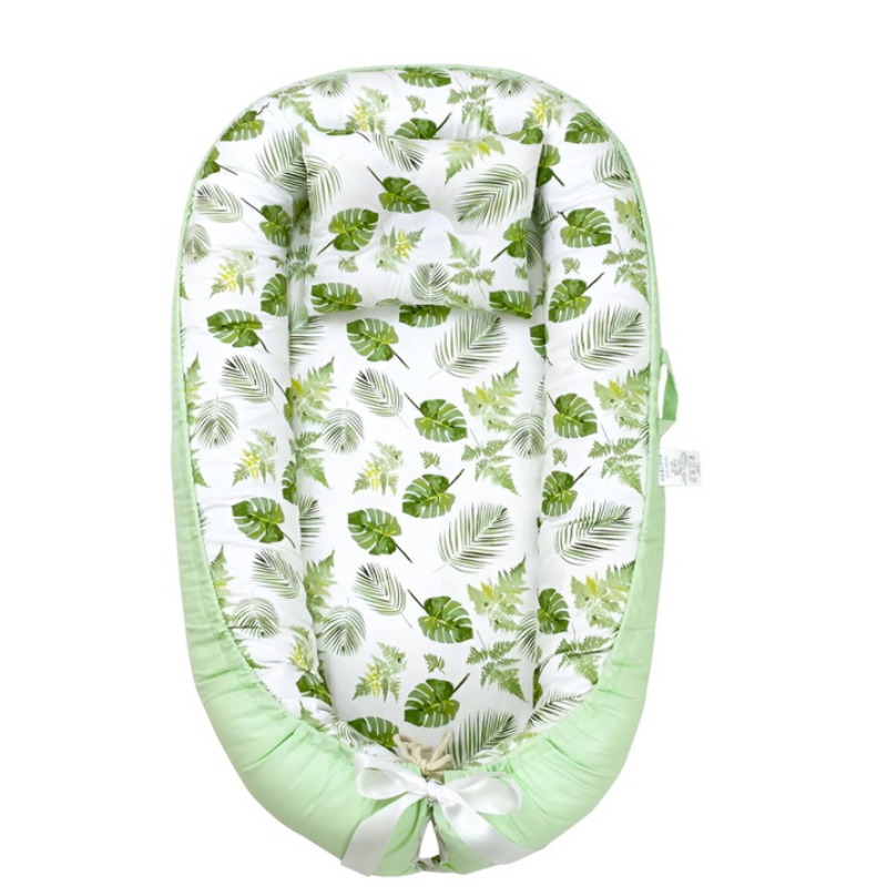 Baby Nest Pod With Pillow - Green - 90cm x 50 cm